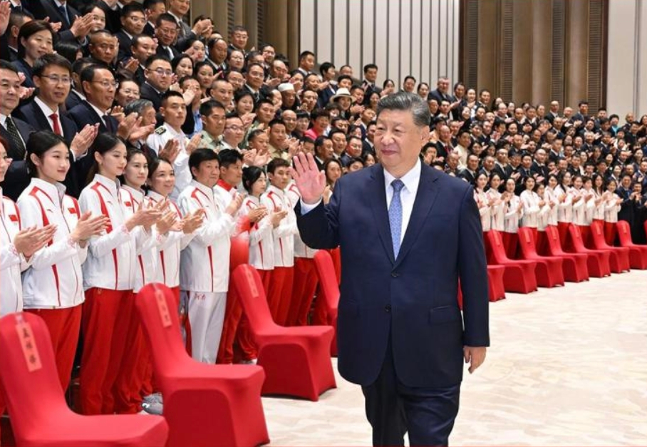 习近平总书记高度重视和关心体育事业,党的十八大以来多次寄语中国体育健儿。每次见到大家,总书记都会点赞运动员们的优异成绩和拼搏精神,勉励大家奋力拼搏、再创佳绩,为建设体育强国作出新贡献。
